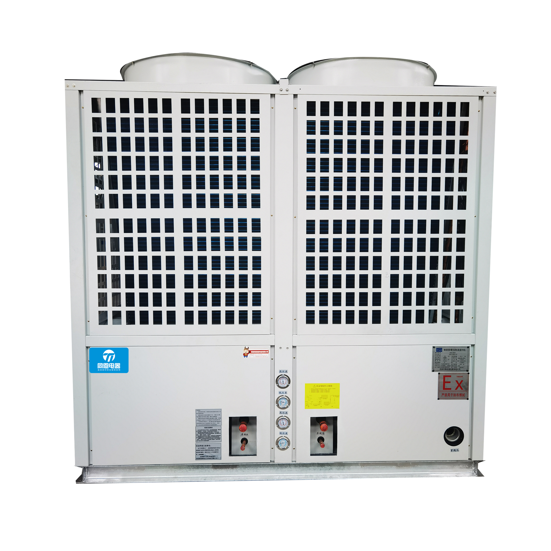 屋頂式防爆空調(diào)機組 全新風(fēng)防爆空調(diào)機 屋頂式空調(diào)系統(tǒng)為全空氣系統(tǒng),整個空調(diào)系統(tǒng)僅由室外主機和室內(nèi)送風(fēng)管兩部分組成,無需水泵、冷卻塔、風(fēng)機盤管等配套設(shè)備,亦無需冷凝排水管道,安裝使用極為方便。系統(tǒng)室內(nèi)無運動機械和水管,用戶無需為噪音和漏水煩惱,維修方便。機組置于屋頂或戶外空地,無需機房,節(jié)省初投資。機組不需二次冷媒,系統(tǒng)效率高。機組配上不同的功能段,可方便實現(xiàn)空氣凈化、除濕、加濕、降溫、供暖、新風(fēng)量調(diào)節(jié)等多種功能。