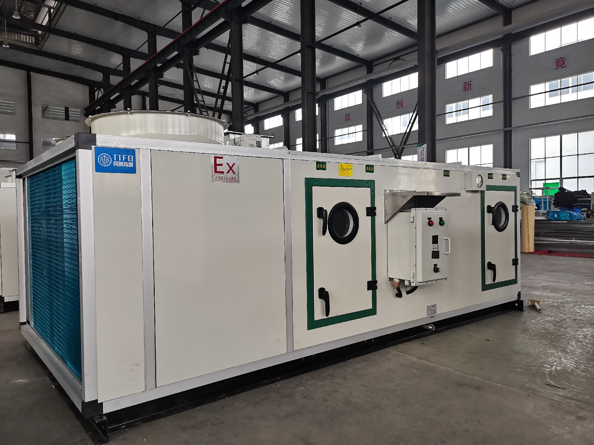 同恩牌防爆屋頂式空調(diào)機(jī)組為全空氣系統(tǒng),是集制冷、制熱、恒溫恒濕、空氣凈化等功能于一體的大中型空調(diào)設(shè)備。該型屋頂機(jī)系列產(chǎn)品集成了直膨組合式空調(diào)與風(fēng)冷熱泵技術(shù),實(shí)現(xiàn)了制冷與空氣調(diào)節(jié)集中式綜合控制等優(yōu)點(diǎn),具有節(jié)能、系統(tǒng)簡單、性能穩(wěn)定等特點(diǎn),的微電腦控制使得空氣性能與品質(zhì)得到了佳的控制;機(jī)組的壓縮冷凝段采用板塊拼裝的方式,空氣處理段各功能段采用鋁合金框架與高壓發(fā)泡雙壁結(jié)構(gòu),具有技術(shù)成熟、設(shè)計靈活、功能段組合多樣、安裝簡便、易于控制等特點(diǎn)。