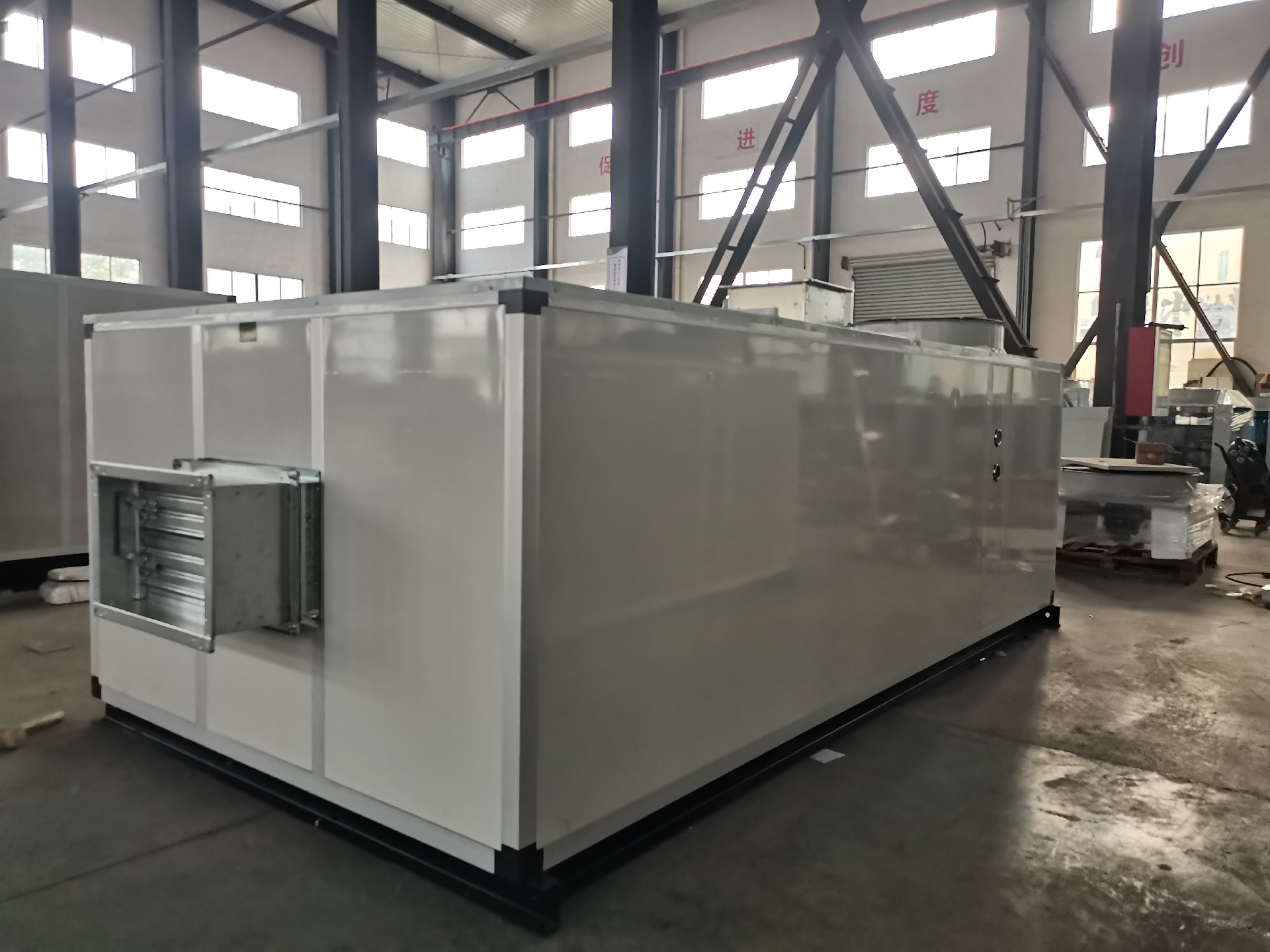 整體式機(jī)組設(shè)計,結(jié)構(gòu)緊湊,精心設(shè)計之機(jī)組框架,簡單輕巧,外觀典雅大方,操作空間大,機(jī)組均可實(shí)現(xiàn)常規(guī)不超寬不式運(yùn)輸。機(jī)組結(jié)構(gòu)件的自動噴涂線全過程處理及噴塑、鋁合金框架、高壓發(fā)泡彩鋼保溫面板以及戶外型特的防雨結(jié)構(gòu)設(shè)計,確保機(jī)組戶外使用的防腐、防銹,無漏雨之虞。