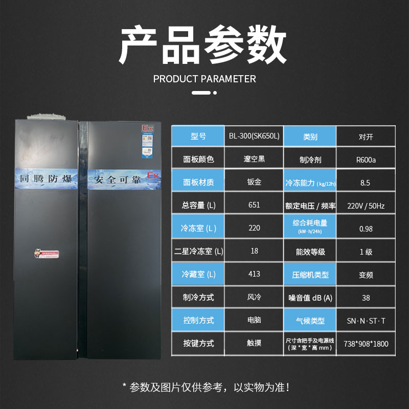 左右開(kāi)門防爆冰箱系列機(jī)型通過(guò)特殊防爆技術(shù)加工處理,廣泛應(yīng)用于國(guó)防、科研、石油、化工、醫(yī)藥、加工制造、生物等存在ⅡA、ⅡB、IIC級(jí),T1~T4組可燃性氣體、蒸汽與空氣混合形成的易引發(fā)爆炸的危險(xiǎn)場(chǎng)所,是針對(duì)有溫度控制要求場(chǎng)所設(shè)計(jì)的特種防爆冰箱,防爆冰箱BL系列產(chǎn)品均通過(guò)國(guó)家防爆電氣產(chǎn)品質(zhì)量監(jiān)督檢測(cè)中心檢驗(yàn),獲得國(guó)家防爆電氣設(shè)備防爆合格證CNEx22.2564X;其外形美觀,設(shè)計(jì)合理并具有安裝維修方便等特點(diǎn),全系列防爆冰箱內(nèi)部采用壓縮機(jī)、微電腦控制、數(shù)字顯示,具有噪聲低、性能穩(wěn)定、操作簡(jiǎn)便等優(yōu)點(diǎn)。深受廣大特需行業(yè)客戶喜愛(ài),并以部分錄入特需行業(yè)定點(diǎn)采購(gòu)名錄。